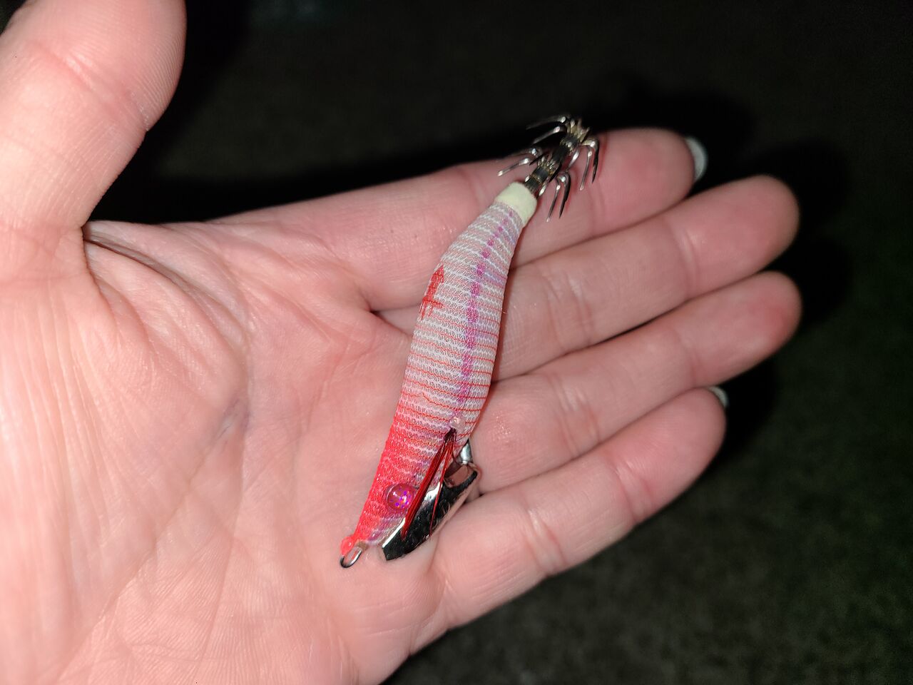 3.5号でも釣れますが、頭や胴体を横抱きするため、足が短いササイカは針に掛からない場合があります・・・
