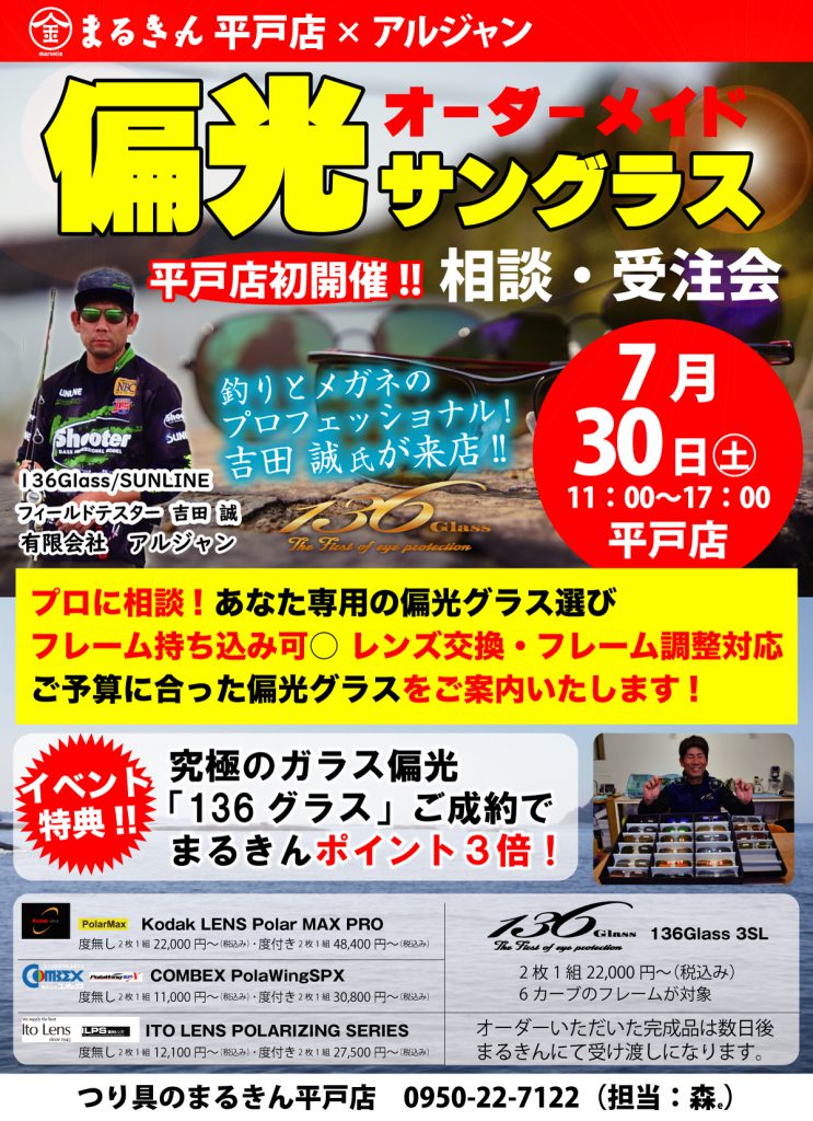 7月30日11時~17時の間、アルジャン偏光グラスのオーダーメイド受注会を開催致します