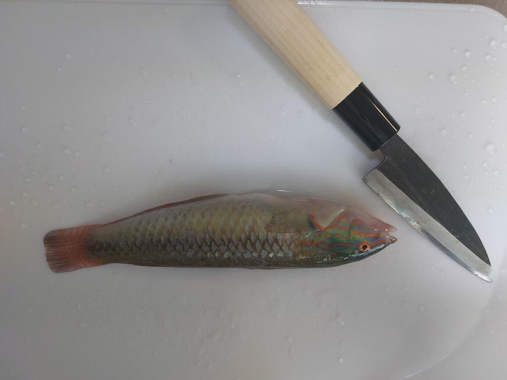 子供の要望により、20センチほどのキュウセンをお持ち帰り。