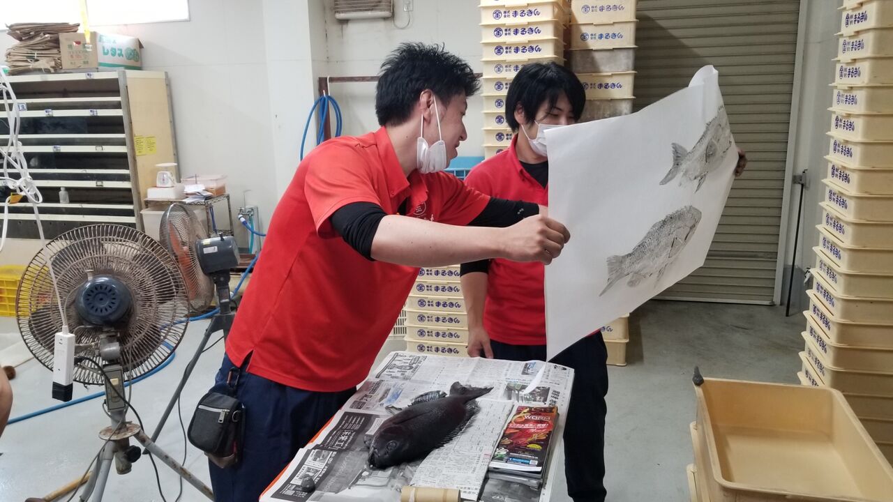 まるきんに新しい魚拓師が二人誕生しました