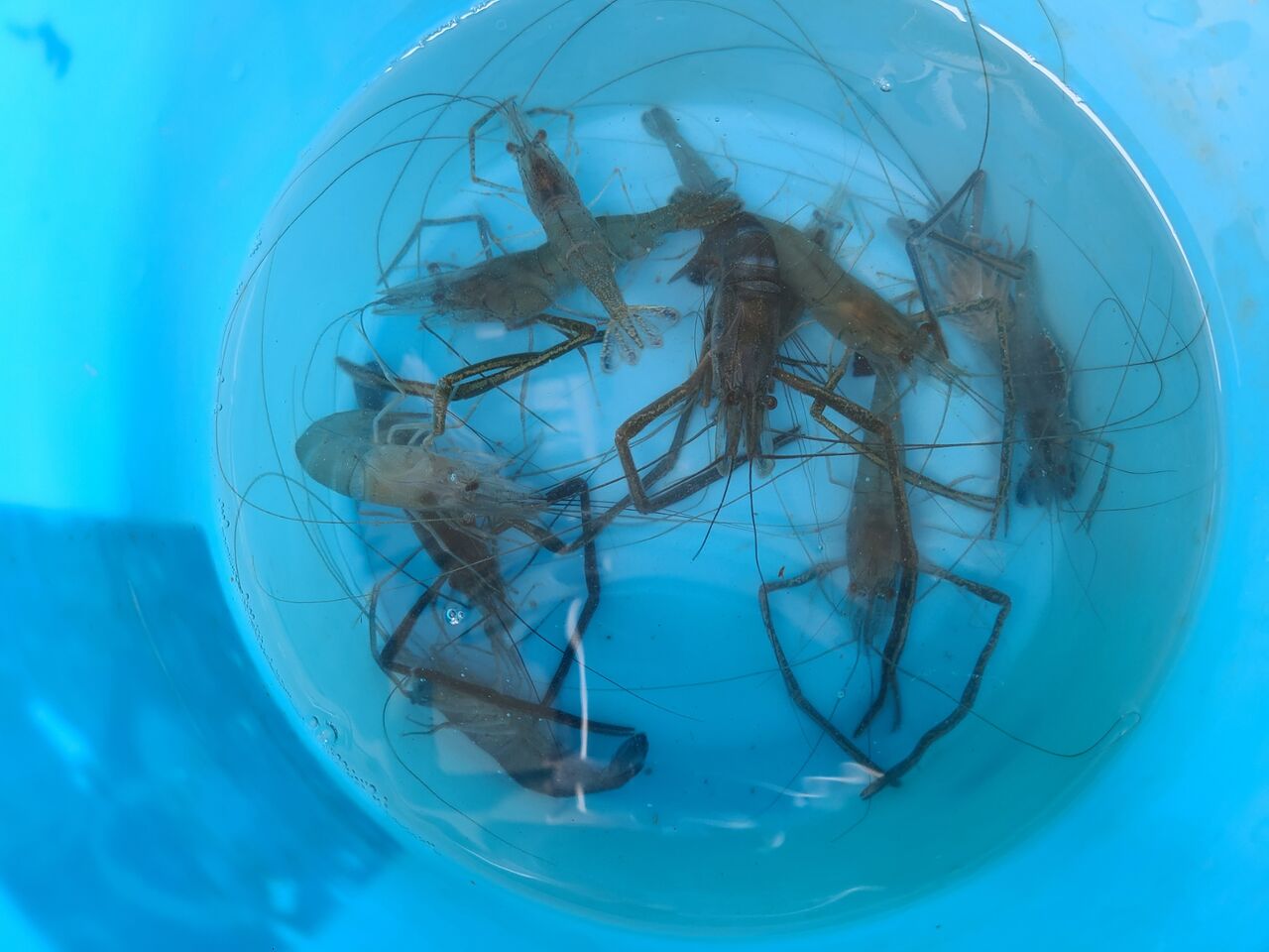 しばらくエビが貯まったらキレイな水に移し替えて泥を吐かせます♪
