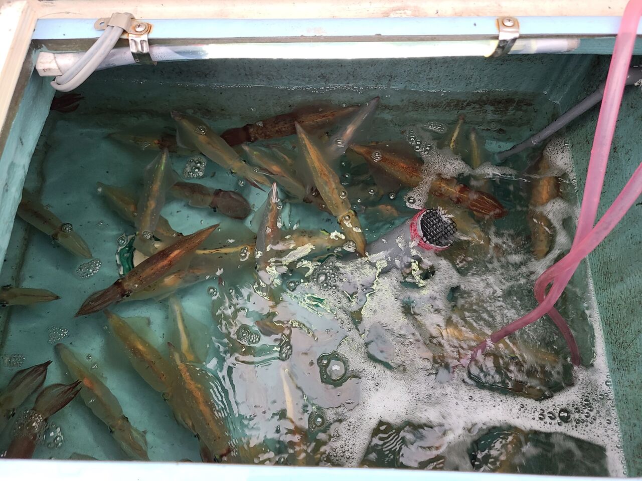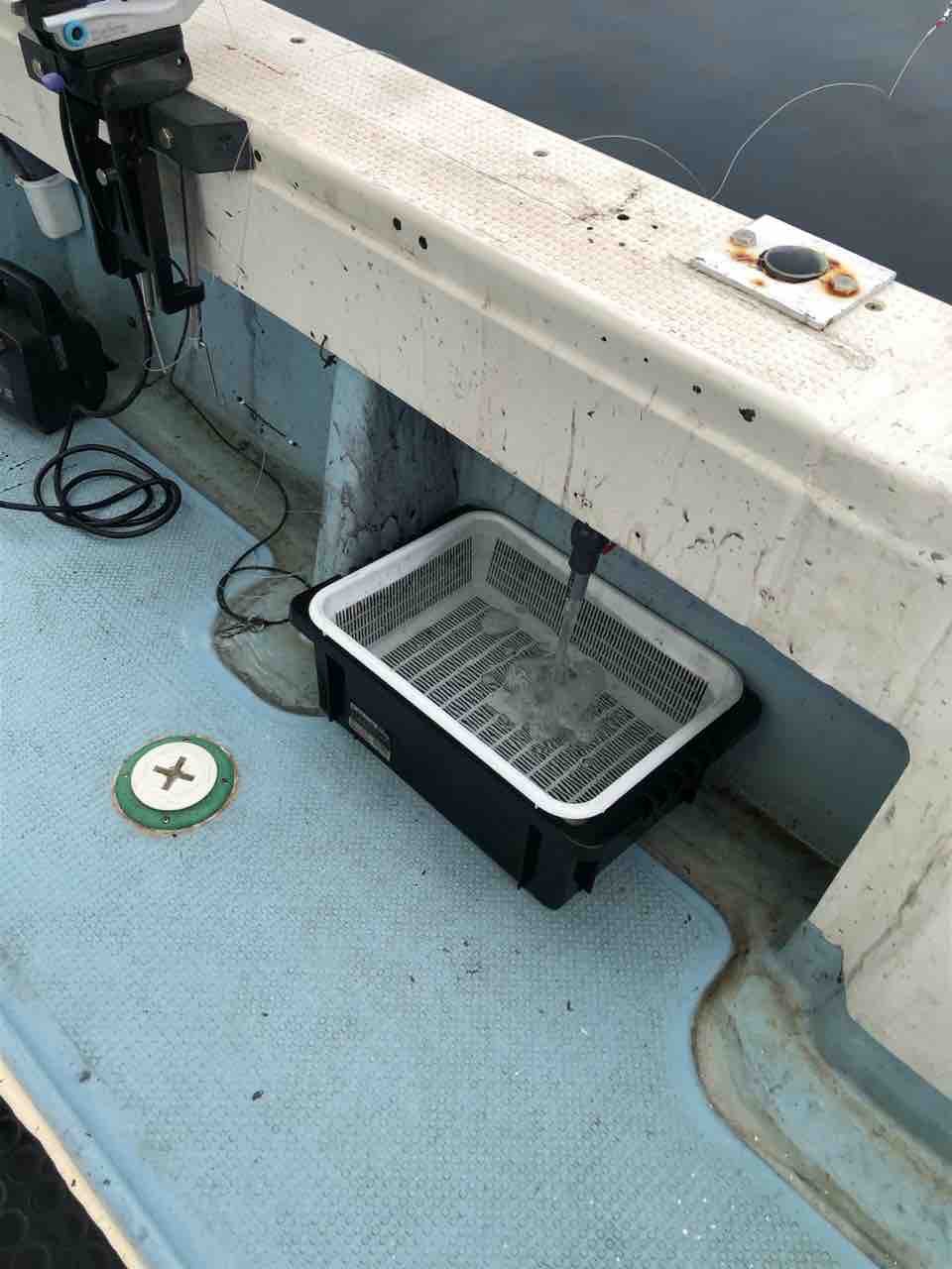 足元に小型の生け簀があり移動の時も生きエサを海から出してすぐ入れられるので、エサも弱りにくくてすごい便利です