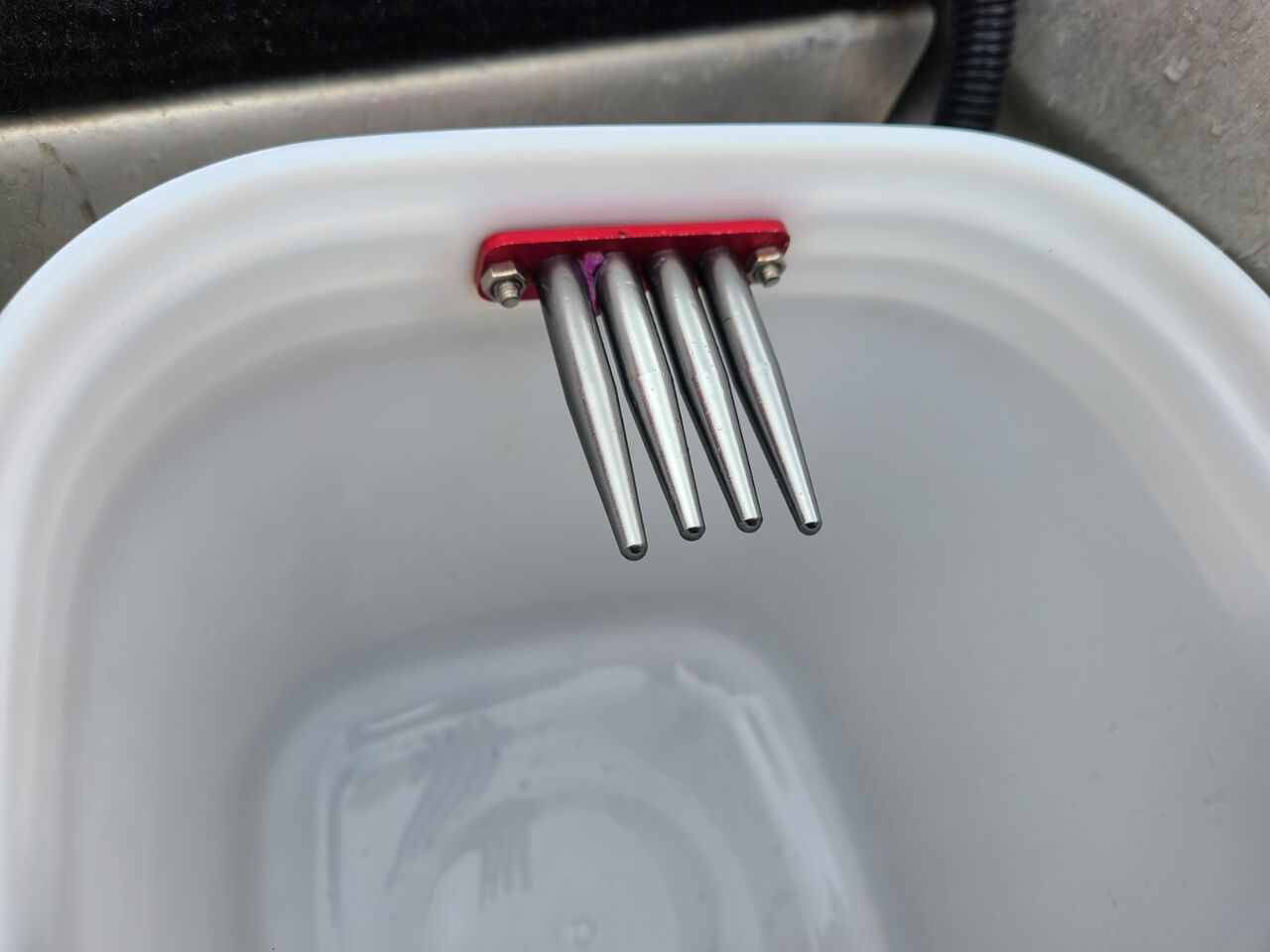 ワカサギを釣ったらバケツに入れますが、爪を装置すると針外しが簡単で手返しが早いですよ