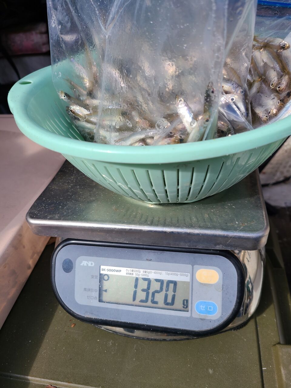 ワカサギは1匹2グラムと考え、引数は600匹ちょっとでした