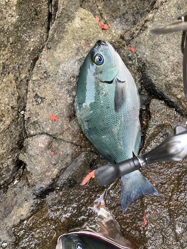 かけ上がりがあるので根掛かりかなとしゃくると、あら