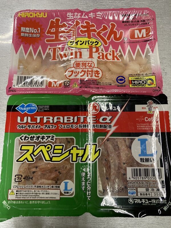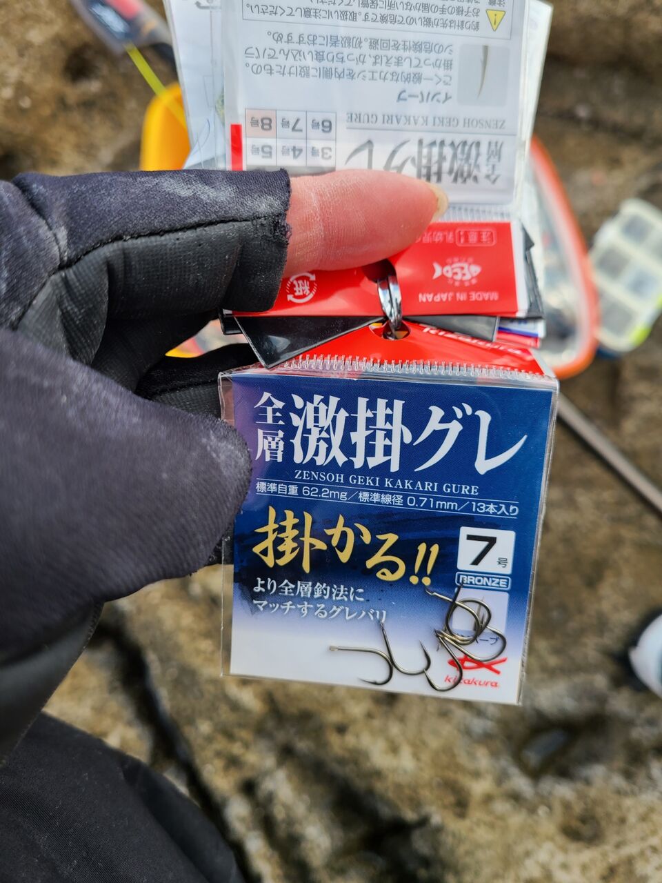 自分はエサ巻きエギのヤマシタ「もぐもぐサーチ」とデュエル「スシQ」で探ってみますが、早々にゴムバンドを切られたので意気消沈