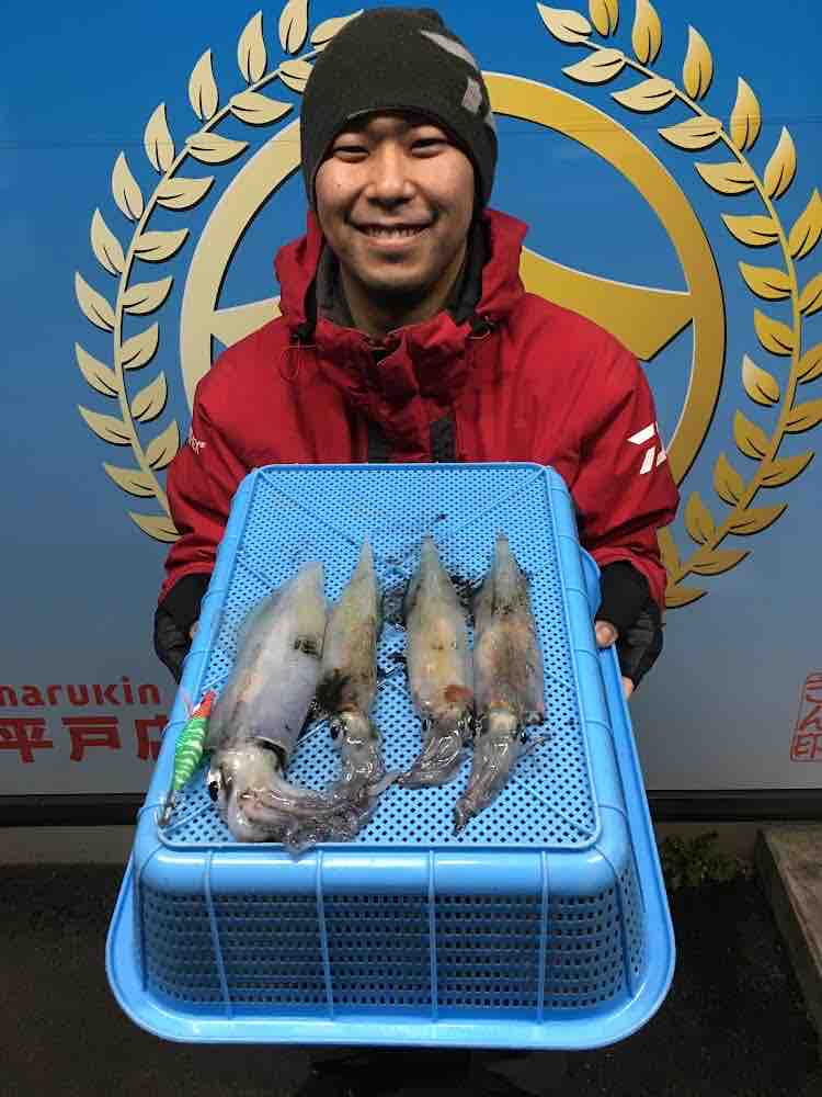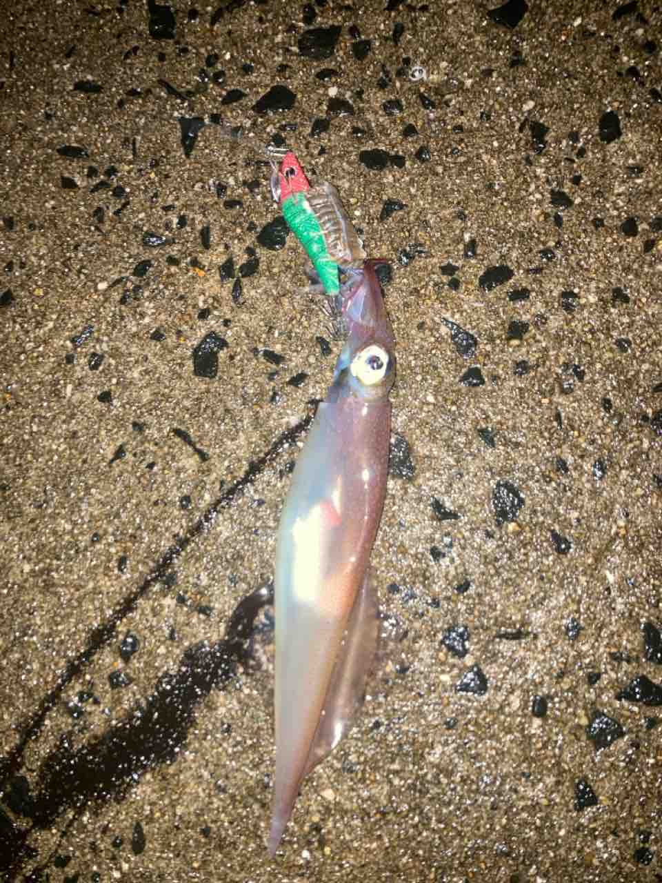 使うエギはキザクラ エギボーヤリドロッパーEBラトル蓄光 赤緑