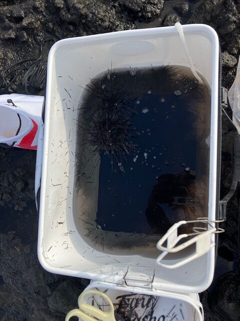あとガゼのケンを磯の上で切ると片付けが大変なので、ウニバッカンの中で切って、そのまま片付けの際に海に流すようにしてます