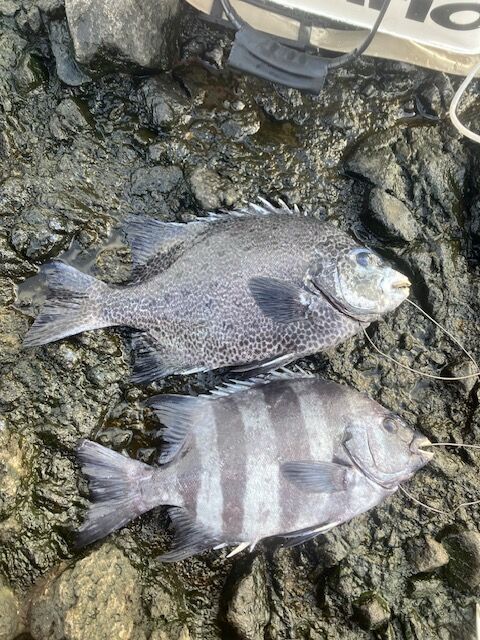 それでも回収時間の14時まで狙う棚や釣り座を変えて粘りましたがこの2匹のみの釣果となりました