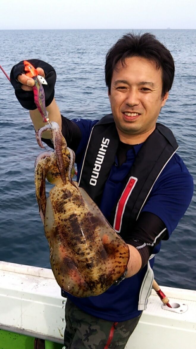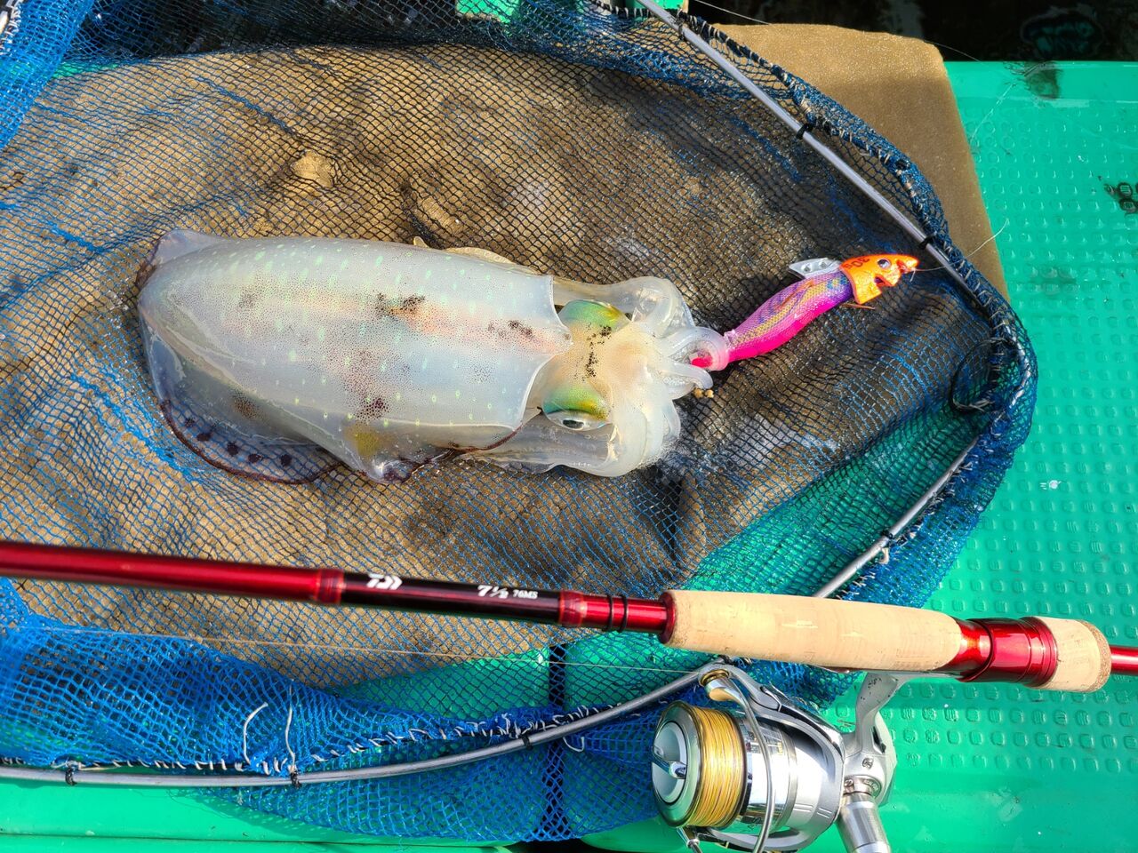 船長がエギを近くに寄せたら着いてきたイカも釣れました