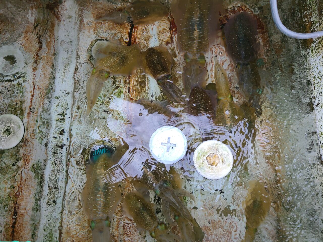 水深50m弱から他のイカが着いてきます!船長がエギを近くに寄せたら着いてきたイカも釣れました