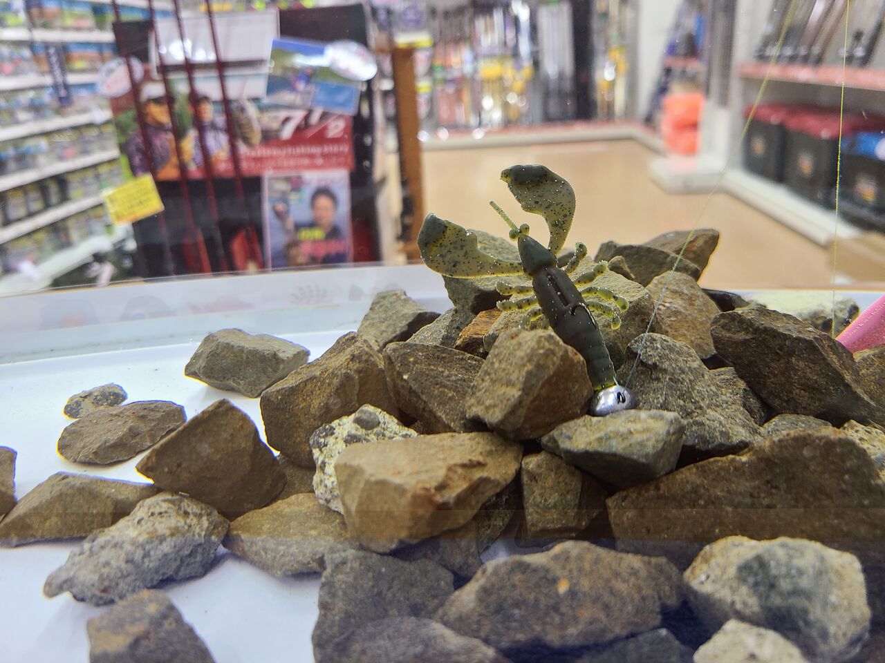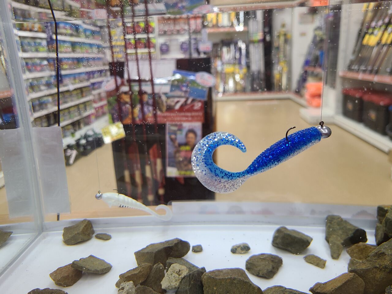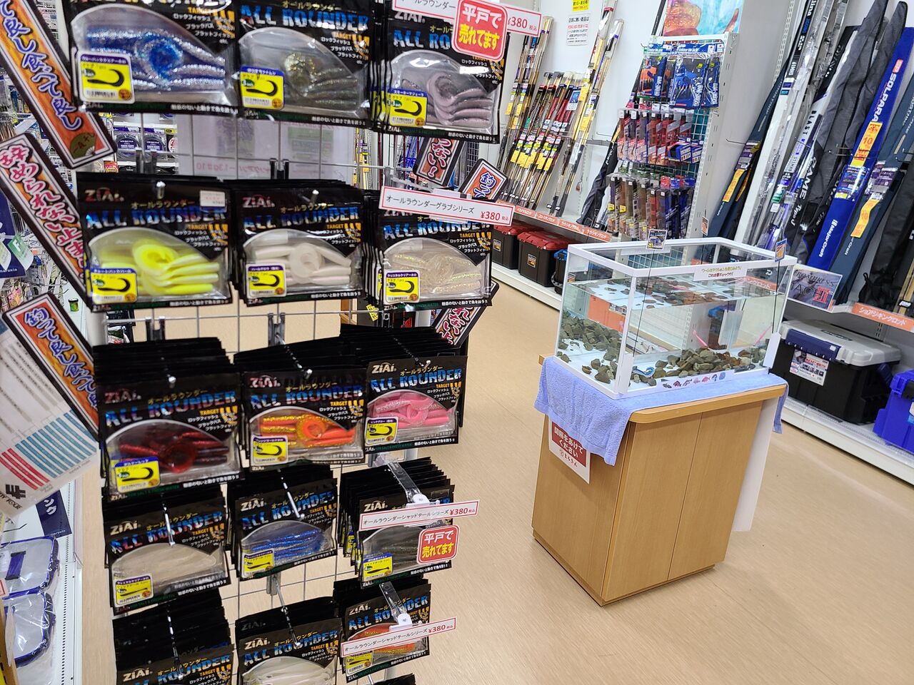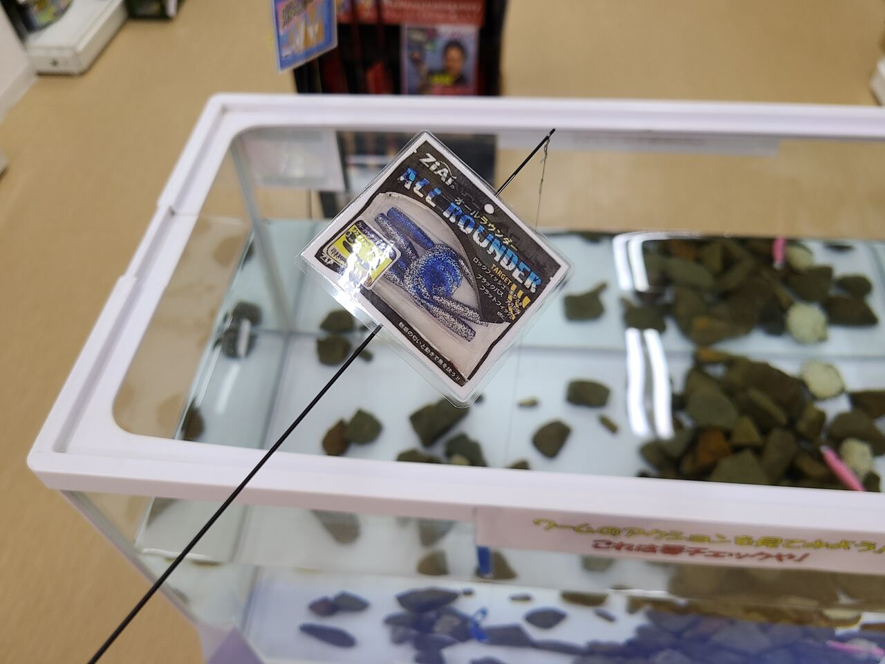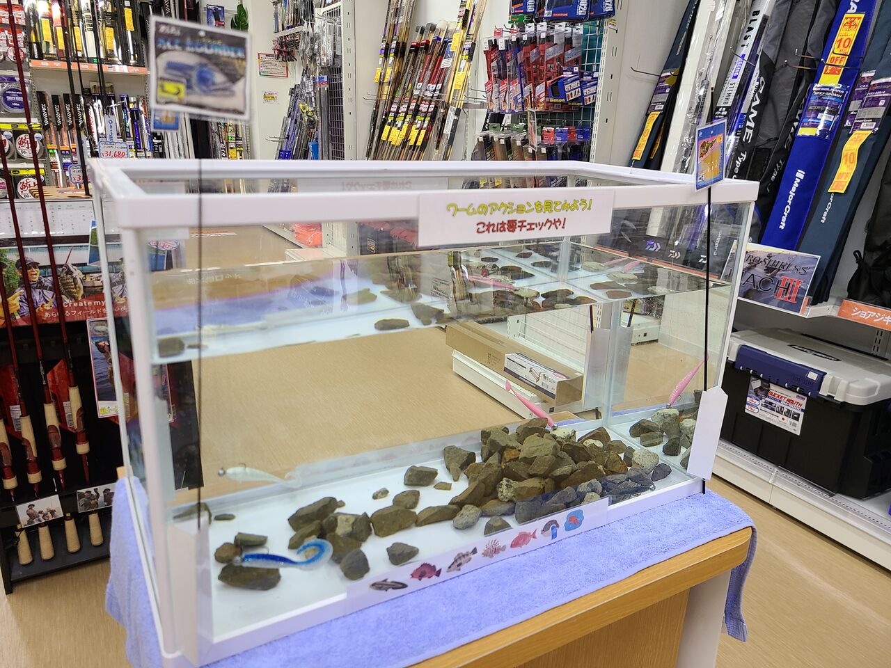 店内右側のルアーコーナーに水槽を設置しました