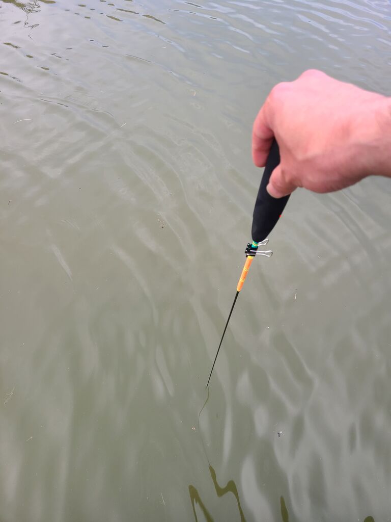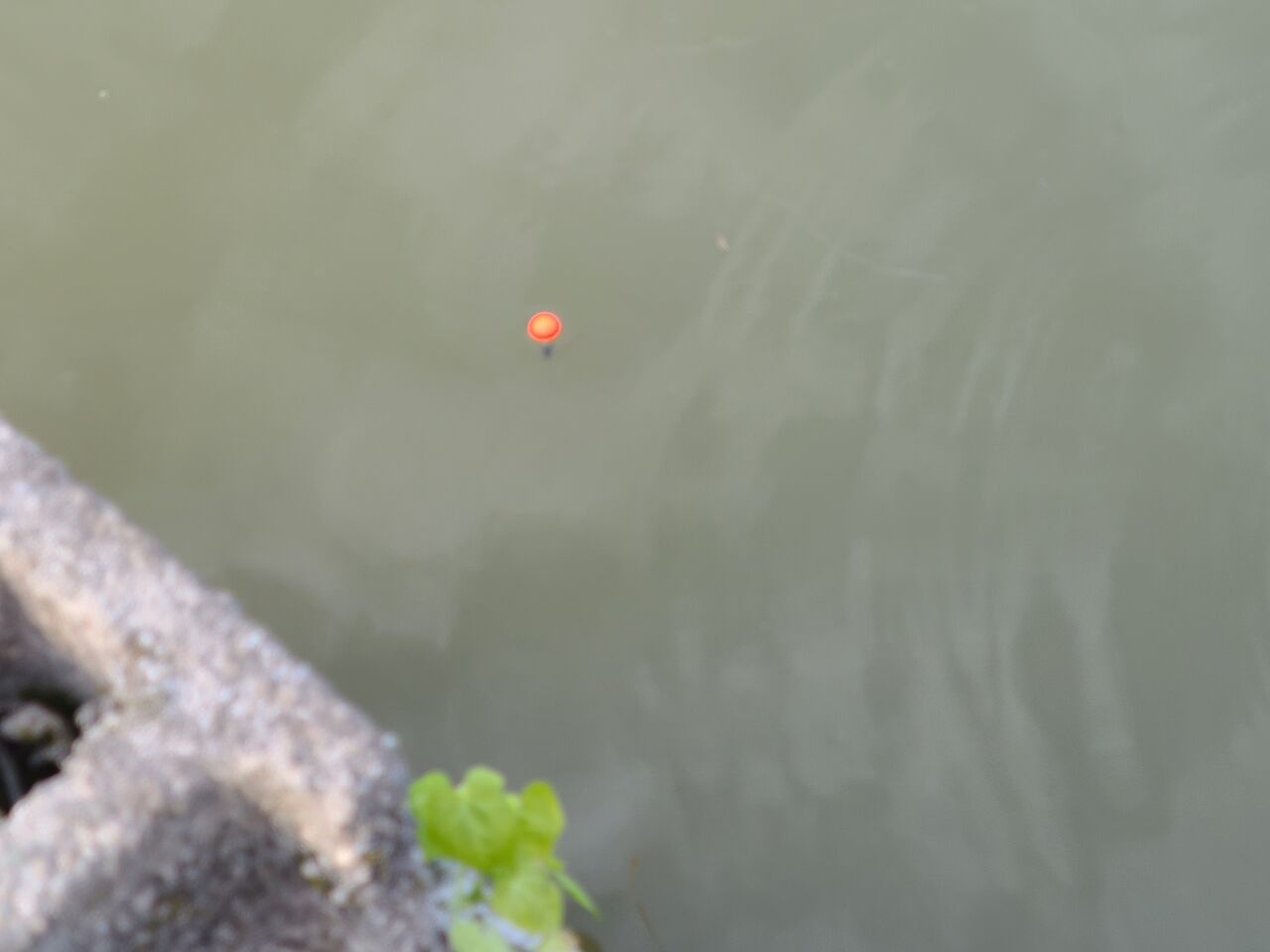 少し底を這わせた方が良いと聞いたことがあるので、水深+3センチくらいにウキを持ってきました